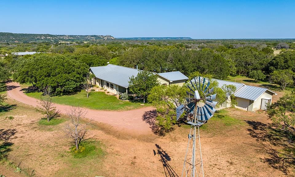 Looking for a 4 bedroom, 3.5 bath home in the beautiful Doss Valley with spacious kitchen with propane range and breakfast bar island, breakfast area and separate dining area, living room with wood stove, abundant closets and cabinets throughout and standing seam metal roof? Two of the bedrooms are master suites. The 14.91 acres also features hot tub, oversized four bay garage, 2 wells, chicken coop, corral, small barn. It is perimeter and cross-fenced and has native pasture land with mesquite, cedar, elm, persimmon, white brush, agarita, live oaks. Road frontage is State Ranch Road 783.