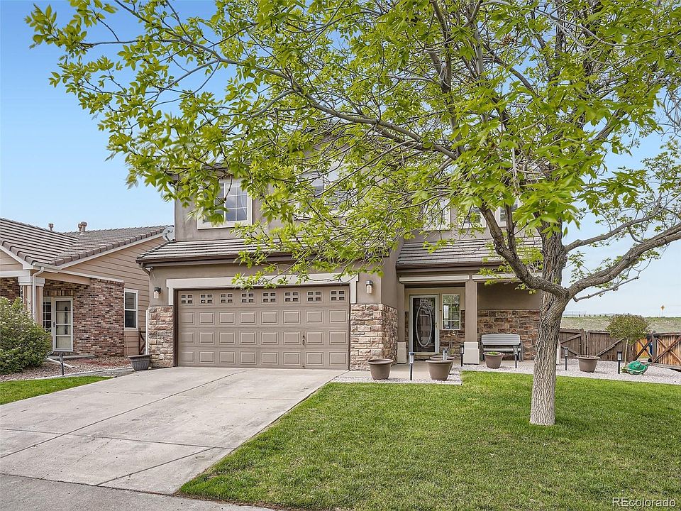 BEAUTIFUL HOME IN THE HEART OF BUFFALO RUN!! The minute you walk in you will fall in love with the bright and sunny open floor plan featuring vaulted ceilings!! Gleaming laminate wood floors throughout!! Spacious kitchen with 42" cabinets, stainless steel appliances, plenty of counter and cabinet space. Kitchen pantry. Dining area. Cozy family room with double sided gas fireplace opening up to the kitchen!!! Updated half bathroom!! Main floor laundry room/mud room. Upstairs features a master suite with walk-in closet, double sinks and full oval tub perfect for relaxation!! 2 additional bedrooms and a full bathroom! Beautiful backyard with trex deck, shed and plenty of room to host those summer BBQ's. Newer furnace, newer water heater, newer AC unit, newer carpet, lighting fixtures and floors!! Close to schools, parks, trails and more! Easy access to E-470, highway 76. Only 15 minutes to DIA and 25 minutes to Downtown Denver. Don't miss out on owning this IMMACULATE HOME!!
