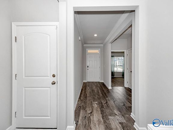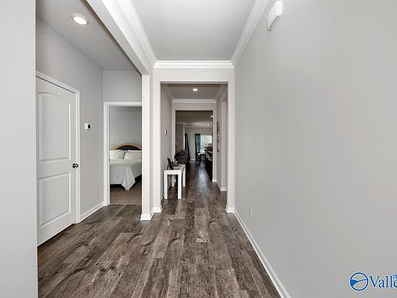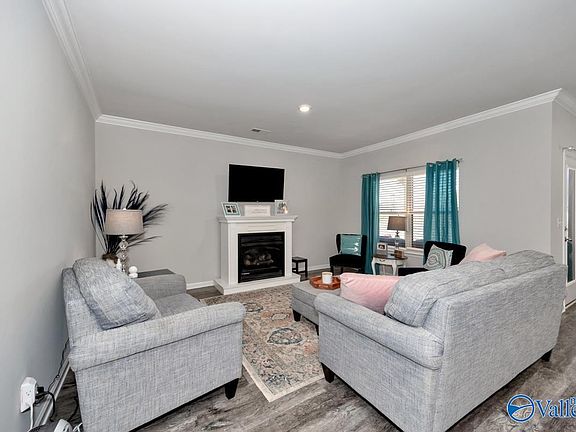 This full brick home features 3BR/2BA, ideally situated for easy access to Athens, Madison, Huntsville, and I-65. The open floor plan, adorned with LVP flooring and recessed lighting, creates a harmonious flow between the kitchen, dining, and living spaces. The kitchen is designed for entertaining, boasting granite countertops, bar seating, stainless appliances, and a spacious pantry. The living and dining areas are flooded with natural light and provide access to a covered back porch, perfect for outdoor grilling. Each bedroom is carpeted for added comfort, with one currently utilized as an office. The master suite bath has a garden tub and separate shower. 2-car attached garage for parking