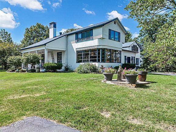 Welcome to this unique home sitting on 4 majestic acres. This property has plenty of history & unmatched character. The home is positioned to maximize the use of two patios on each side of the home. The peaceful views of the valley & grounds are absolutely breathtaking. Hardwood flooring adorns the majority of the main level. The dining room features a unique two corner window wall. The living room features an impressive fireplace with marble surround. Each chandelier in the the living & dining room displays hand-crafted plaster mouldings. It really showcases the craftsmanship of the era. Convenient main level owner's bedroom. Kitchen features smooth top stove/range, dishwasher & fridge included. There is also a breakfast room, library/den & 2nd bedrm on the main level. Upper level features a full bath & 2 bedrooms each having bonus sitting rooms. 2 car & 1 car detached garages are a great place for vehicles & storage. Time to get away & own your peace of history today!
