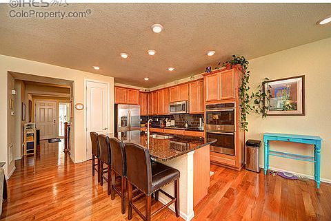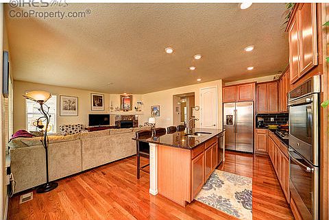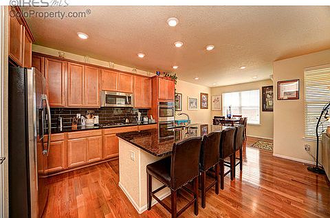 Fabulous ranch style paired home at Heritage - Todd Creek (Gated Golf Community) with unobstructed mountain views. This home is only 9 months old and is in new condition. You will appreciate gleaming hardwood floors in the entry, hall, kitchen, dining room and family room, has stainless appliances, granite countertops, a large center island with breakfast bar and a gas fireplace in the great room. The master suite features double sinks, tile flooring, granite counters and a huge walk-in closet.