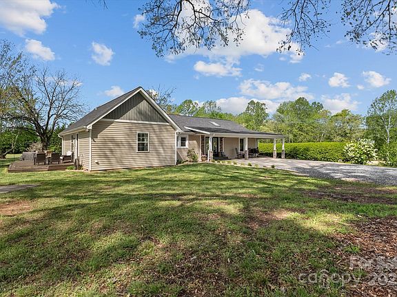Newly remodeled adorable ranch home on appox. 4 acres. Features include...Beautiful Bamboo wood flooring throughout; cozy, stone gas log fireplace; custom cabinets in kitchen w/granite countertops and eat-in island; ss appliances including double oven; dining area; playroom; wood plank ceramic tile in baths and laundry; addition added in 2021 including 2 bedrooms, office, laundry and full bath; private outdoor area that includes covered porch, firepit and pool (2024)...perfect for entertaining! For the auto enthusiast...40 X 30 detached garage/shop w/13ft. double doors. Roof is 2021 and HVAC 2024. This home has it ALL!!! Please see photo from GIS showing that approx. 1.78 of the 4 acres are across the road and could be used for gardening, storage, etc...Great location in the desirable Mt Ulla area only 10 min from Mooresville!