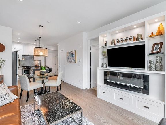 Welcome to the award winning "Royce", this well laid out, open style plan features large windows and offers abundance of natural light. Gourmet kitchen equipped with a Gas stove, Quartz counters and an Island with bar seating. The living area (with electric fireplace) is open to the dining room and allows that extra space that you require. The large, covered balcony with a view of the ocean faces Everall Street, considered to be the quiet side of the complex. The master suite allows for all your furniture and has a large WI closet. The bathroom doubles as a cheater en-suite with a new WI shower and designer tile with heated floors. The den is a perfect spot to work at home. Great Amenities offered with an Exercise gym, pool table room and a fireside lounge. Rental allowed. 2 pets any size