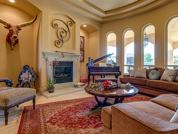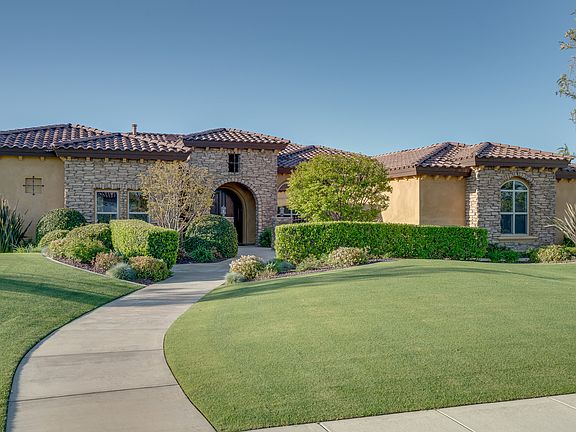This stunning home is situated in prestigious Talladega and showcases a beautiful Mediterranean style with travertine flooring, 8 foot doors and archways. The floorplan lends itself to comfortable elegance with formal living, dining, great room and 3 separate wings for privacy. A Gourmet chef’s kitchen features granite island with eat in bar, custom cabinetry and Viking range with beautiful stone backsplash. Fabulous Master bdrm with ultra en-suite bath, walk-in shower and jetted tub. Sizable 3 additional bdrms and the 5th bedroom currently used as an office has a private entrance and built-in double desk unit. Abundant amenities include tray ceilings, surround sound, alarm with cameras, instahot water, garage built-ins, Mission exterior stucco finish and much more. Gorgeous backyard with huge RV behind gates, plumbing and electrical in for master planned future pool and shop all on a stunning @2/3 ac executive homesite.