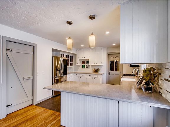 Natural light floods this beautiful home where original charm meets modern updates! From the exposed timber beams and vaulted ceilings to the recently updated Kitchen with Quartz countertops, Farmhouse style sink, matching stainless steel LG appliances, and walk-in Pantry with barn door, you will know you are home! The main floor master bedroom suite feels like a private oasis in a mountain chalet. Hardwood flooring runs throughout the main level with a guest bathroom and a mud room with full-sized laundry and utility sink. Four more bedrooms and full bath provide plenty of space to spread out in the upper level. The unfinished basement provides plenty of storage and awaits your finishing touch. Enjoy beautiful sunrises and sunsets from your expansive front porch complete with gorgeous Colorado mountain views. The flat .40 acre lot provides mature shade trees, large deck and a fenced in area as well as plenty of space to park your RV and recreational toys!