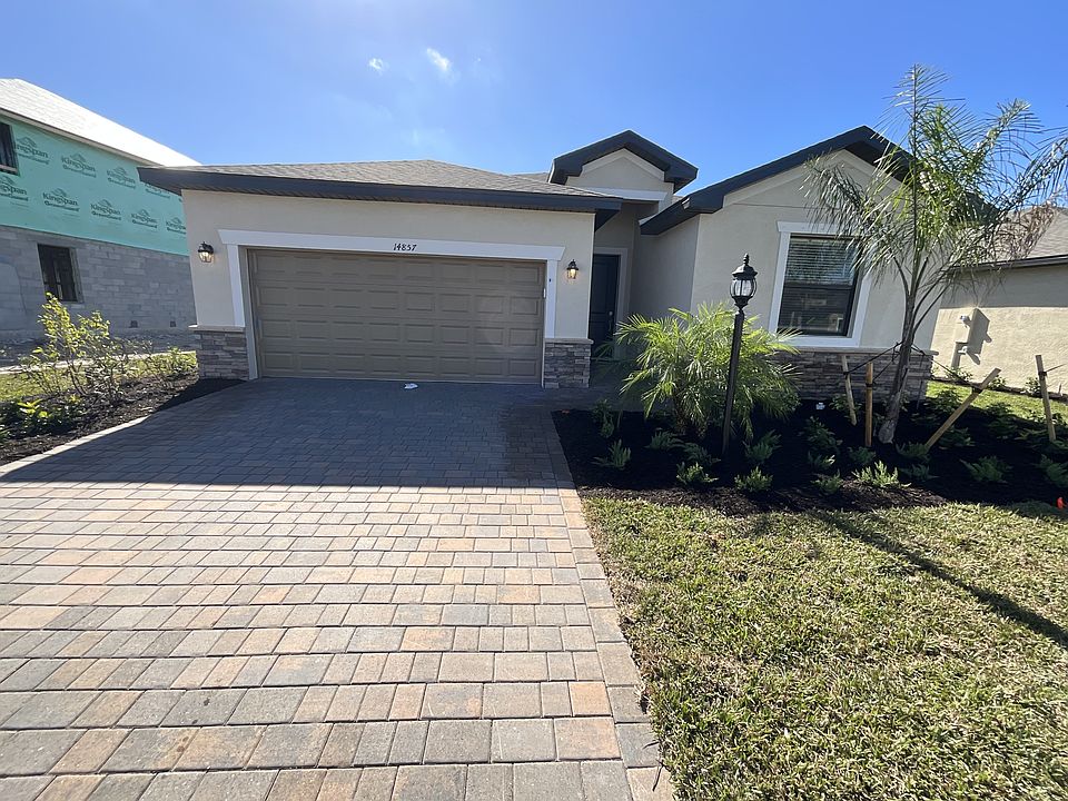 Welcome to Portico! This Brand New 4 bedroom 3 bath home will be available for a March 1st move in. The kitchen is appointed with 42" cabinets, quartz countertops, stainless steel appliances and a walk in pantry. The master suite has an oversized shower and walk in closets. One of the guest bedrooms has its own bathroom with a walk in shower. Enjoy your evening cocktail or morning coffee overlooking the lake view. Portico includes wireless internet and a state of the art clubhouse with basketball, tennis, workout center and sidewalks everywhere. Don't miss this opportunity to be the first to live in this new home.