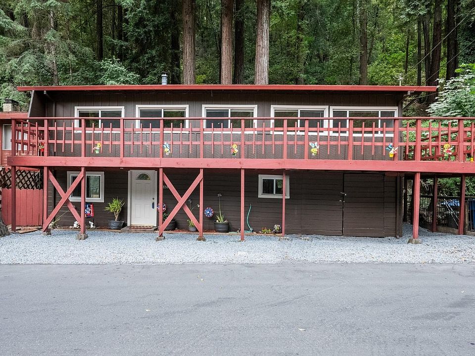 Charming and newly updated Rio Nido Bungalow perfect for a vacation rental, city getaway, or affordable Sonoma County living alternative. Nestled close to the Russian River, enjoy a variety of outdoor recreational activities . Located across from a park, community garden, and tennis court, this home offers such a unique and exciting living situation. The backyard feels like a different world, with large redwood trees and quaint spots to enjoy morning coffee or entertain guests. A large wrap-around deck provides additional opportunity for outdoor living space and relaxation in the sun. The bottom floor features a finished bonus room or den and a one-car garage for extra storage.