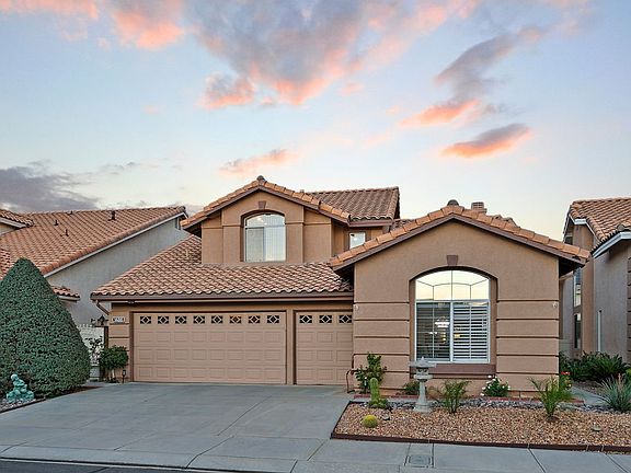 Discover resort-style living at 1486 Birdie Dr, within the prestigious guard-gated Sun Lakes community, designed for those 55+ seeking an active yet peaceful lifestyle. This rarely available, largest model in the neighborhood +2.5 garage, offers a spacious and thoughtfully remodeled first-floor layout, perfect for entertaining and relaxation alike. As you step through the double front doors, you’ll be greeted by a bright, open entry with soaring cathedral ceilings, a newly installed chandelier, and a sweeping staircase. The formal living and dining rooms, bathed in natural light and accented with plantation shutters and elegant lighting, provide the perfect backdrop for family gatherings or hosting new friends. A dual-sided fireplace adds warmth to both the formal and casual living spaces, creating a cozy ambiance whether you’re hosting a dinner party or enjoying a quiet evening at home. The updated kitchen is the heart of this home, featuring modern stainless steel appliances, ample storage with pull-out cabinets, and new laminate plank flooring that combines style with easy maintenance. The casual dining area and bar seating offer space for guests to relax as you prepare meals using your stainless steel gas cooktop and oven. With a reverse osmosis/water softener system recently installed, you can enjoy delicious purified water every day. Outside, the serene, low-maintenance backyard invites you to unwind under the long covered patio, surrounded by mature flowers and ambient lighting, all while taking in the stunning boulder-studded hills in the distance—a perfect retreat after a day spent on the golf course or at the clubhouse. The first-floor primary suite is a true sanctuary, featuring a newly remodeled bathroom with an oversized walk-in shower, dual vanity, and a spacious walk-in closet. Upstairs, an open loft leads to two additional bedrooms—ideal for an office or long term guest accommodations—with high ceilings and plenty of storage space. Sun Lakes offers an unparalleled array of amenities, including two 18-hole golf courses, tennis and pickleball courts, two restaurants, a bar with live music, saltwater pools (indoor and outdoor), two clubhouses, gyms, cable & internet, a library, billiard room, and countless social clubs and activities. Whether you're looking to stay active or relax in luxury, this vibrant community has it all. Come experience the perfect blend of tranquility and recreation at 1486 Birdie Dr—where your dream lifestyle awaits!