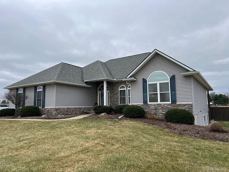 Stepping in the front door you're greeted with towering ceilings, an open floor plan that pulls you to the covered rear deck with a large steaming hot tub and a cool refreshing pool to splash around in. Natural gas grill to remain at home along with all kitchen appliances. The kitchen is massive with a large cooking island & bar seating lined with granite countertops. The walk through dining room has its own gas fireplace and wood flooring. Primary bedroom suite with a trayed ceiling, large walk in closet, jetted soaking tub, walk in shower and its own door wall to the hot tub. The basement is wide open & finished fresh new carpet just installed, office & 4th bedroom, great for entertaining.