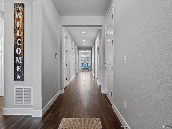 This is not hyperbole! This really is the one! Meticulously maintained and well upgraded ranch in Plum Creek! Walking in you'll find upgraded hardwoods throughout most of the main level! In the front of the home you're greeted by two bedrooms and a full bathroom with 2 sinks and a quartz countertop! From there you'll continue to the nicely updated laundry room, followed by the primary suite! Here you'll find a large walk-in closet, coffered ceiling, and a large 5-piece primary bathroom! Continuing down the hall you'll see an office which could be used as a formal dining room, then you'll walk into the massive, open concept kitchen which flows thru an eating area and into the great room! The kitchen is well upgraded with high end cabinets, upgraded GE appliances, a 36" gas range, double ovens, and gorgeous quartz countertops! In the great room you'll see a stunning back wall with shiplap accents surrounding the fireplace. The basement is your open canvas! It's finished with upgraded carpet, a 3/4 bathroom, and a large fourth bedroom! The basement also features ample storage in two locations. The house has beautiful plantation shutters throughout, upgraded flooring and counters throughout, and the garage floor is professionally finished with epoxy coating on the floor! In the back yard you have a beautiful view of Castle Rock itself, immediate access to the walking trail system that connects you to downtown Castle Rock or the Douglas County Fairgrounds in a matter of minutes! You'll have the best views of the fireworks from the rock! The back yard is professionally landscaped with retaining walls and turf so you don't waste water! The hot tub is also included! This is an immediately move-in ready home with every upgrade you'd want! Truly one of a kind, don't let this one pass you by!