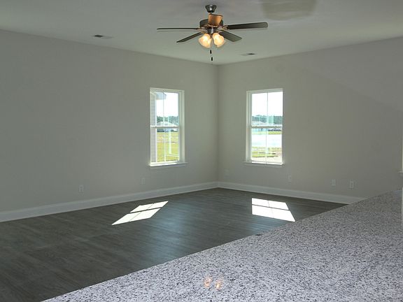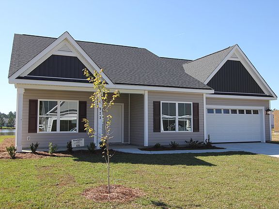 Stunning one story home with a taste of modern design. Two bedrooms adorn either side of the foyer perfect for the family or welcoming guests. Beyond the foyer, the house has an open concept layout and features a sprawling Great Room, Breakfast Area, and a well-lit Kitchen, which fearures tons of cabinetand counter space w large floating island. The master suite includes personal access to the back porch and a fantastic walk-in closet large enough for two to share. The exterior of this home offers great curb appeal thanks to double reverse gables with Board & Batton vertical siding.