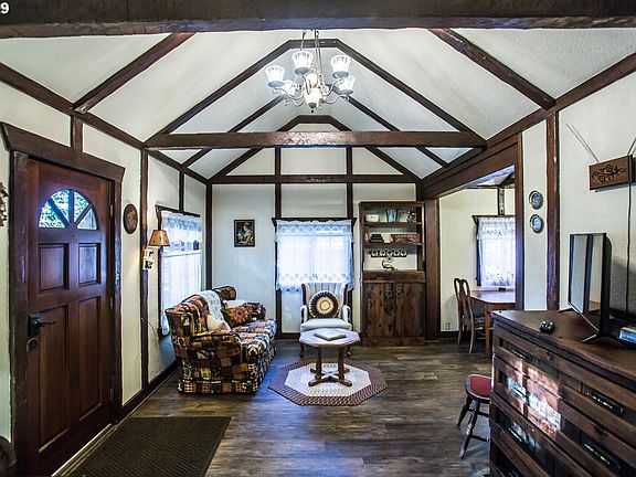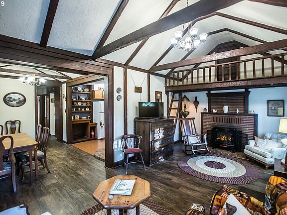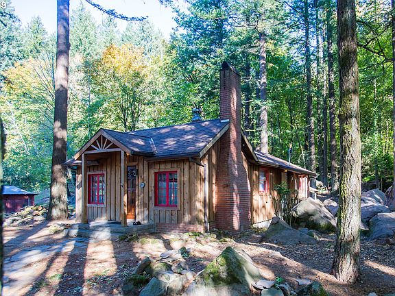 Darling Historic Cottage on nearly 1 acre of land with old growth timber along the National Scenic Highway, built in the early 1920's. Rustic 2 Bedrooms, 1 Bathroom, good size living room with high ceilings, exposed beams, fireplace & cute loft area. Kitchen opens to dining room with corner built-ins. Cute outbuilding. Across the street from the Sandy River. Sale includes 3 tax lots R287086, R287088, & R287089. click on VTour