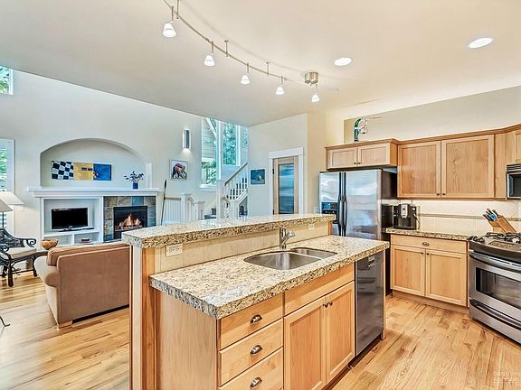 Beautifully cared for and tastefully decorated Westside Bend townhome in Northwest Crossing directly across the street from a gorgeous park. This end unit faces south and is very light and bright. The great room opens to a fenced and inviting side yard patio, and features hardwood floors, vaulted ceiling, a gas fireplace, and upgraded kitchen with an island, granite counters and stainless appliances. There is a spacious main level master suite and two upstairs bedrooms with a bright open loft/bonus area. This well maintained home is close to schools and shopping.