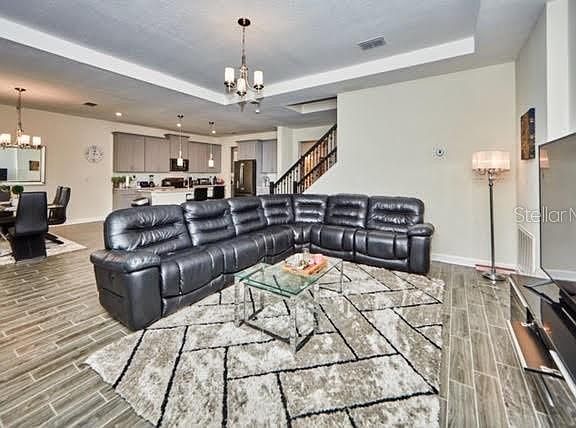 COME SEE THIS BEAUTIFUL AND NEW HOME IN COUNTRY CLUB IN CHAMPIONS GATE COMMUNITY. THE HOUSE HAS MANY UPGRADES LIKE KITCHEN CABINETS, FLOORINGS, STAIR RAILS AND BATHROOMS. THE HOUSE IS AN ALMOST 4,000 SQ. FT SPACIOUS 4/3 AND HALF PERFECT FOR A LARGE FAMILY OR FOR GOLF LOVERS. HOA INCLUDES CABLE, GOLF MEMBERSHIP, ACCESS TO 2 CLUBHOUSES AND $75 FOOD AND DRINK CREDIT TO BE USED AND AT THE PLAZA CLUBHOUSE. THIS SIDE OF THE COMMUNITY IS RESIDENT ONLY SO NO VACATIONERS ALLOWED. VERY SECURE COMMUNITY 2 SECURITY GATES TO COME IN. ALL ROOMS ARE VERY SPACIOUS AND THE MEDIA ROOM IS VERY COZY AND ENTERTAINING. MASTER BEDROOM IS SPACIOUS WITH AN UPGRADED BATHROOM. VERY LARGE CLOSET. COME SEE AND YOU WONT BE DISAPPOINTED.