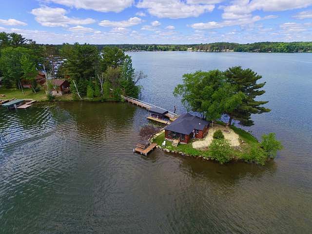 Big Arbor Vitae Island Condo- Unique opportunity to own an island on one of Northern Wisconsin's highly sought after lakes. Recently, the cabin was completely renovated from head to toe with many major upgrades. The bridge leading to the island was rebuilt, as well as decks and boat slips .This accommodates a golf cart to and from the Island. Upon walking inside the cabin you will find Northwoods charm throughout. Beautiful pine walls/ceilings, all new appliances, granite countertops, new windows, new flooring, Insulation, and much more. The 2 BR 1 BA cabin offers 360 degree lake views and is surrounded by sugar sand swimming frontage. The newly added attached garage is currently being used to park the golf cart but could easily be converted to the 3rd bunk house for sleeping quarters. This is a rare chance to own a trophy property that could not be duplicated. Don't miss this amazing opportunity!