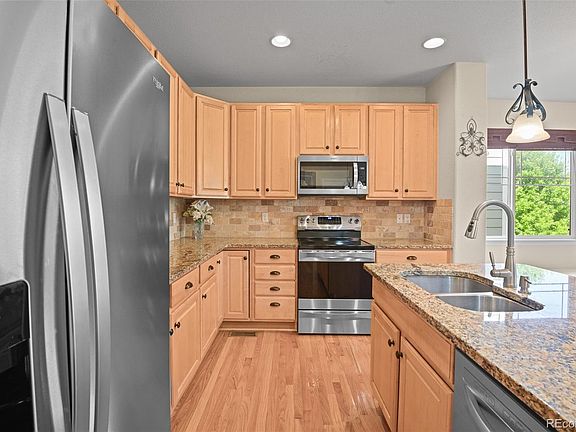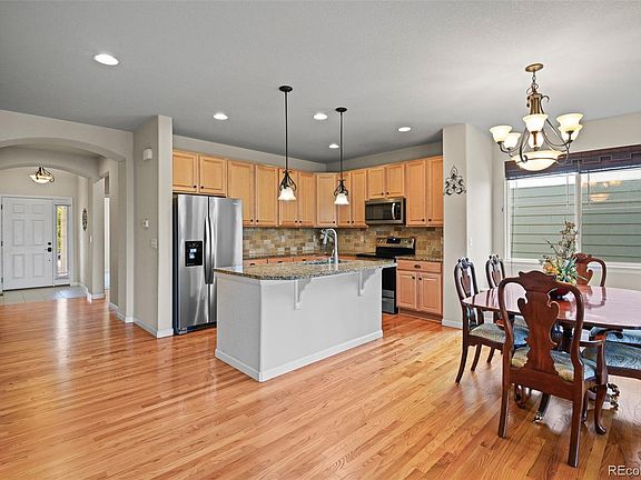 Incredible Opportunity to own a beautifully upgraded ranch with walkout basement in the desirable Meadows neighborhood of Castle Rock. This home features stunning hardwood floors, and the floor plan flows seamlessly from the gorgeous kitchen—featuring granite counters, stainless steel appliances, and upgraded oak cabinets—into the main living and dining area.