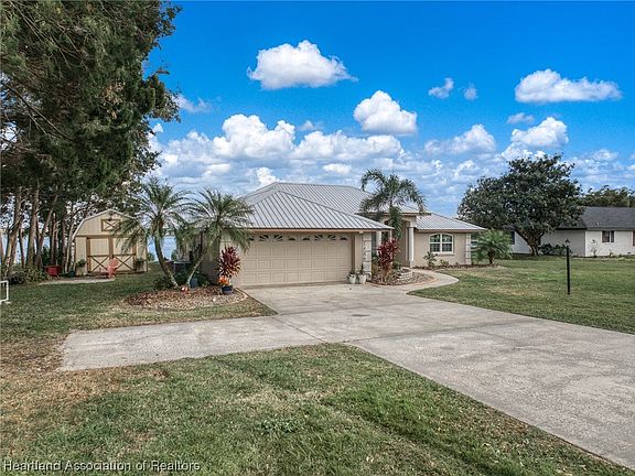 This must-see lake front home can be yours! Located in the serene city of Avon Park directly on Lake Viola, NO HOA, and settled on a well manicured .62 acre lawn in a tranquil area. Offering three bedrooms two bath split floor plan boasting over 2,000 living square feet and two car garage. You will be captivated by the tall vaulted ceilings and sun-filled living area overseeing Lake Viola through large sliding glass doors. The primary bedroom offers direct access to a 2022 CalderaSpas Paradise Series hot tub overlooking Lake Viola. On the opposite end you will enjoy double side walk-in closets leading to the upgraded ensuite bathroom and oversized walk-in shower with a full bench seat. The other sizable bedrooms have a pocket sliding door at the entrance hallway for added privacy for guests. There is an exterior door in the guest bathroom leading to a bonus outside shower located at the south end of the home. Enjoy your mornings at the breakfast nook with a view of Lake Viola or from the lanai which has ample space for entertaining guests. You can also spend time watching Sandhill Cranes fly in to visit throughout the day. Adequate space in the dinning area with newer color matching appliances in the kitchen. Separate in home utility room with wash sink and storage cabinets. Some upgrades to home include an AC unit in 2016. Metal roof roof in 2018. Large 24x12 ft shed for extra storage in 2019. All new windows and doors 2/2021. A 50 amp RV plug installed at the front of the garage entrance and sizable 60x16 ft driveway. Central water is active in the home with a water filtration system. Separate in-ground well pump is used for irrigation. Lake Viola is a round natural clear sand bottom lake in northern Highlands County, Florida. It is directly north of the city of Avon Park, Florida. Lake Viola has a surface area of fifty-six acres and a maximum depth of twenty-six feet. It has a public boat ramp on its northwest shore. It has a swimming beach on its northeast shore, but this appears to be only for the use of lake residents. Since there is a boat ramp, public fishing is allowed by boat. The only public access to the lake is via the boat ramp.