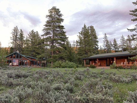 A stone's throw from the borders of Grand Teton National Park and Bridger Teton National Forest, this quintessentially-Wyoming log home is a private retreat offering breathtaking views and classic rustic charm. The main home -3 beds/4 baths- is the ideal blend of Western cabin and modern luxury. With two stone-clad wood fireplaces, comfortable living spaces, a screened-in porch, formal dining, and idyllic Teton views, this horse-friendly property is a picturesque mountain haven. The guest house includes 2 beds/2 baths, kitchen, spacious living area, and decks. Additionally, there are two cozy guest cabins and a handcrafted tree house. Summer or winter, this unique location offers access to pristine Pacific Creek, easy access to Yellowstone, Jackson Lake, and the amenities of Jackson Hole.