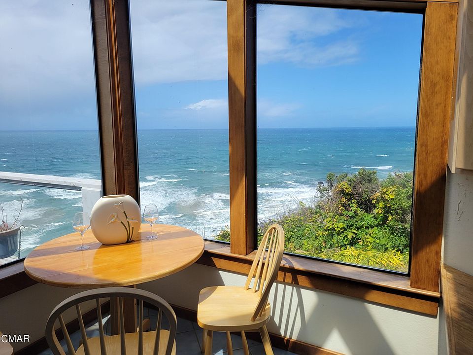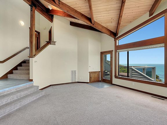 Custom built home w/unobstructed ocean views! An entertainer's delight, the kitchen has bar seating, wet bar, breakfast nook, with slider to small deck to catch the ocean breeze! Step down into the living room with fireplace, nearly floor to ceiling windows and door to another deck! The primary bedroom suite on the south side of the home looks west, with jetted tub, stall shower, large walk in closet through to laundry area. The second bedroom is up the stairs off the kitchen on the north, full bathroom, & additional office/media room at the the top. Bonus rooms: office storage space over the garage & makeshift wine cellar under the house, accessed via the south deck. Picture yourself watching the sunset each evening from this slice of paradise!