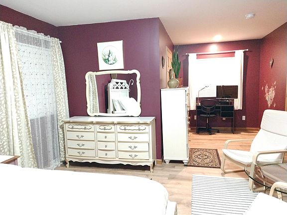 Fully Furnished - Cozy guest suite in a friendly secluded neighborhood. Built in a ranch style house (one level only) with separate entrance to a living room, spacious bedroom and an attached full bathroom with two sinks and a bathtub with shower. Well lit with natural light throughout the day. Very quiet and green neighborhood, secluded from traffic sounds. Famous for walking! Main features: ~ Separate entrance to the suite ~ Spacious Bedroom - Queen size bed - Dresser with mirror - Chest For Clothes Storage - Extendable Garment Rack - Panel Folding Room Divider - Coffee table - Two relaxing Chairs - Reading lamps - Study table with lamp - Office chair - 48 inch smart TV - Cable ready - Widescreen computer monitor (on request) ~ Attached full bathroom - Two sinks - Bathtub with shower - Hot water - Toilet with bidet - Front load washer ~ Living/Dinning/Mini-Kitchen room - Dinning table and chairs - Refrigerator with freezer - Microwave - Electric hot water kettle - Coffee machine - Cooking Utensils - Silverware - Induction stove top with a pot and a pan specifically designed for it - Loveseat with folding table ~ Parking - Assigned parking spot in the driveway - Driveway and walkway lit with security lights ~ Utilities Included - Heating - Cooling - High speed WiFi - Water - Trash Removal ~ Guests will have the entire suite to themselves ~ Air conditioning and heating is controlled centrally Pets: Only small dog No smoking or vaping No party events No street shoes inside the house No burning of incense sticks No unattended burning candles Quiet time between 11 pm and 7 am