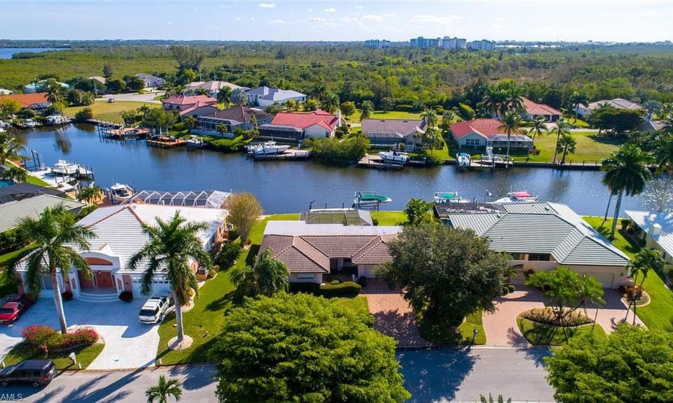 Palm Acres near Sanibel, fantastic water views, southeastern exposure, 160ft wide canal, 500ft longwater view, and deep water for outstanding gulf access boating. Only 8-minutes idle speed to San Carlos Bay where you can see the Sanibel Causeway, Sanibel Island, and Pine Island. This 3 bedroom, 2 bath, great room floor plan home is clean as a whistle, comfortable, and move-in ready. Big ticket items such as the roof, kitchen, air conditioner, and pool heater have been replaced. Entry level price point homes rarely become available in this prime waterfront community, especially with such a perfect lot, so come take a look. Little things on Canaan Drive make a difference, such as wide canals, curbing, storm drains, and below ground utilities. Fishing guides bring their clients to this back yard! Manatees and dolphins are sighted here most every day. Truly a beautiful location, take a ride out to Palm Acres, walk to this concrete seawall, step onto this dock, and image your boat on this lift.