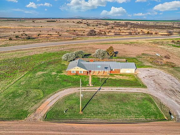 Situated on 7.84 acres of land, less than a mile from Roosevelt, this attractive rural home offers tranquility and space for serene country living. With 2315 sq. ft. of comfortable living space, the home welcomes you with a circular driveway, a patriotic flag pole and a roomy covered front porch. From here you will enjoy your morning sunrise view over quartz mountains behind fields where deer frequently graze. Now step inside to discover a spacious family room adorned with a cozy fireplace and built in custom shelving to house precious memories - a perfect spot for entertaining family and friends. The well-appointed kitchen features a breakfast bar and separate dining area with a large picture window for tranquil views. The kitchen also offers generous cabinetry and counter space, a window for natural light over the sink, a built-in range, dishwasher and refrigerator. The 14 x 11 foot utility room is just off of the kitchen and houses the pantry. Here there is more than enough room for washer, dryer, extra freezer, etc. The bedrooms are all located on the south end of the house. There is a master bedroom with spacious walk-in closet and ensuite full bath with double sinks and a tile shower. The other two bedrooms and another full bathroom are just down the hall. The backyard features a sizable 40 x 12 covered patio, perfect for spending time outside and protected from the elements. This would be a great place for cooking family dinners out on the grill. With almost 8 acres at your disposal including a pond and city water, the possibilities for farm animals, gardening and modern homesteading could be within your reach. This property could be a dream come true, for the right family - maybe yours! Call me anytime for a personal tour. From Roosevelt, home is less than a mile north on US-183. From Hobart, home is less than 12 miles south on US-183.