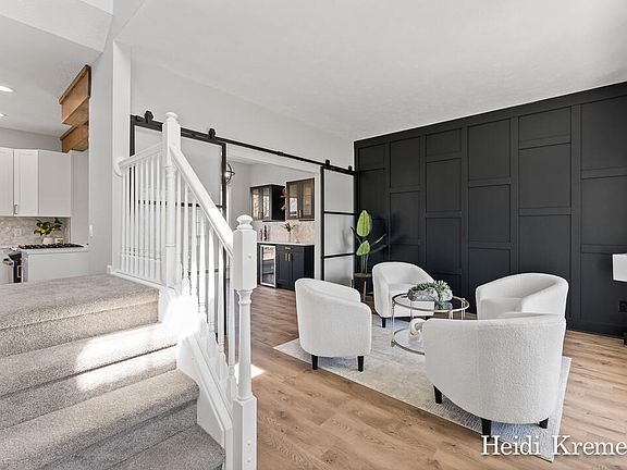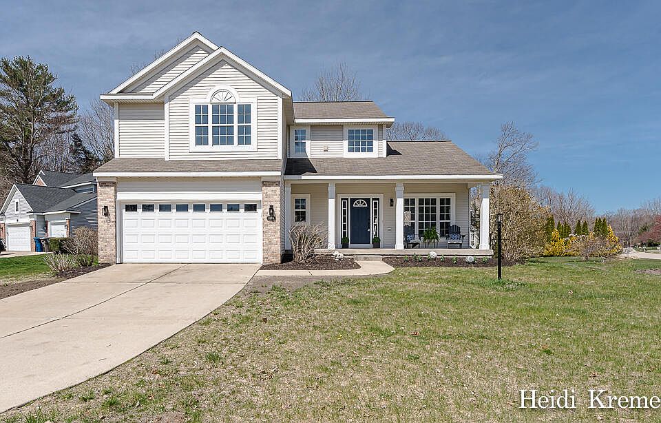 COMPLETE REMODEL! NEW ROOF to be complete 5/13..Almost every surface in the house has been re-done. Sought after Hickory Woods subdivision, Spring Lake school District! You will fall in love with this neighborhood and its proximity to paved trails and lake access. Interior features include 2-story foyer into a gorgeous flex space that could be used as a sitting room, office or dining room! glass doors lead you to a dry bar and Beautifully remodeled kitchen with new quartz countertops, tile back-splash, new stainless appliances, and island and snack bar where a wall was removed for a more practical open floor plan. Main floor also includes a large family room with gas fireplace and an eating area. 1/2 bath. Second floor includes primary suite, two additional bedrooms, and 2 full bathroom The lower level has an amazing rec room, flex space and another guest suite with full bath!