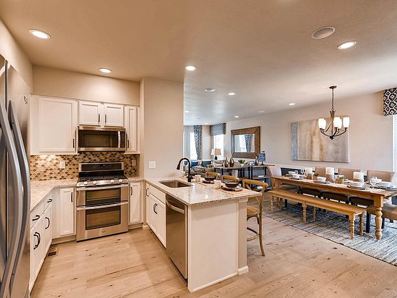 Pioneer Hills is a sought-after paired home community in a great location with exceptional views of Cherry Creek State Park and Reservoir! Step in and fall in love with the open floorplan and extensive hardwoods throughout the heart of the home. The Sparkle is functional and modern and features spacious family room and dining rooms that are perfect for entertaining or relaxing after a long day. The kitchen is fit for a chef, with highly upgraded cabinets with hardware, granite slab counter tops, and gas range. Upstairs the spacious Master Suite features features a luxurious private en-suite bath. Outdoor living abounds in this home, with a covered front porch and fenced yard. Staying organized is a breeze, with an Owner's Entry/mudroom just off the garage with on-trend lockers for storage. There's even an unfinished basement that gives you room to grow. Come see why Pioneer Hills makes the perfect new home!