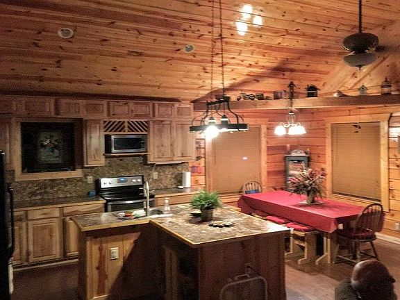 3 bedroom 2 bath log cabin This amazing custom built log home is located on 5.19 private acres in Overton County TN and features a large great room with pot belly stove, indoor utility room, all the walls and ceilings are local white knotty pine, exposed beams, large custom wraparound deck, amazing kitchen with rock backsplash ?? center island with sink and sitting area, master bathroom was just remodeled. Property is treed and private, gravel driveway, underground electric, City water and septic, metal roof, large walk out basement that provides ample storage and an additional utility shed. Central heat and air installed February 2019 This also has it's very own waterfall that you can see from the amazing back deck. This home is located in an area that has over 2000 acres of atv trails, located within 5 minutes of the Obee River and Lake Hopp for all outdoor water activities, Dale Hollow is 30 minutes away. Natural gas is available in the area. Asking $159,000 furnished. This is our personal home so message me for more information, please tag if you know someone interested, thank you for SHARING The waterfall is roaring right now and sounds amazing from the deck