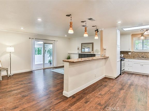 Welcome to 14862 Sabre Ln in Huntington Beach. This beautiful 3 bedroom single-level home is newly remodeled & situated on a quiet cul-de-sac with one of the largest lots in the neighborhood. As you enter, you will notice the new laminate flooring throughout the entire home. The kitchen offers an open floorplan & extra counterspace great for entertaining. Kitchen upgrades include granite countertops, stainless steel appliances, & built-in beverage fridge/wine refrigerator. Down the hall, all bedrooms are generous in size with mirrored closet doors. The guest bathroom is newly remodeled & beautifully designed with a custom vanity. The added custom cabinets with full length mirror give additional storage space for the ultimate organizer. The large master bedroom offers a custom window bench perfect for reading while enjoying morning coffee. The master bathroom has brand-new flooring, shower, vanity and toilet. The mirrored closet was designed by Closet World. The bonus room was designed for an in-home office &/or play room. Other home features include central air/heat, new water heater, new interior paint, upgraded light switches, recessed lighting, & copper plumbing. The attached two car garage includes custom cabinets built by closet world, with access to the backyard. The back yard has been perfectly maintained and offers an array of fruit trees: Banana’s, Apple, Lemon, Avocado, Guava, Tangerine, and Grapefruit just to name a few. This gorgeous home is a must-see!