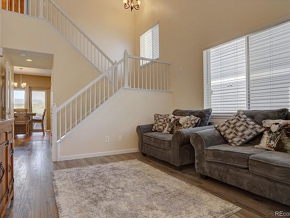 An exclusive offering at coveted Villages at Buffalo Run! This impressive well-maintained three-bedroom home is bursting at the seams with high-end finishes, sunlight, and inviting spaces for you to relax. Primary Bedroom and Living Room feature surround sound speakers. Fresh interior paint throughout and scratch resistant flooring make this home move-in ready. Enjoy what's left of summer and Autumn to come from the privacy of the backyard, full of greenery, florals, and a patio large enough for a BBQ area complete with a gazebo! The Spanish Tile roof carries a 50 year warranty and the furnace and A/C were replaced in 2015 giving you peace of mind in your investment. Venture outside the community to nearby Bison Ridge Rec Center, Coors Field, sports fields, restaurants, shopping, and quiet walking trails. Get ready to live your life to the fullest as you immerse yourself in The Villages at Buffalo Run - you won't regret it!