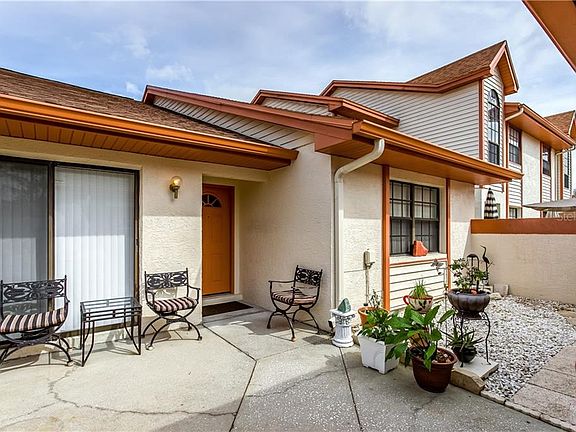 Located in the Country Club community of Feather Sound. Rarely available end unit villa in Feather Cove with large detached 2 car garage!! Priced so you can make your changes and update if you wish. ALL one story. The screened porch has been enclosed and air condition (not included in square footage) and can be used as an office. Courtyard entry for gardening, private sunning, outdoor cooking and entertaining. Inside laundry room with full sized washer and dryer. Split bedroom floorplan. This home is steps from the Feather Cove clubhouse, heated pool and additional parking.Low, low maintenance of $213.33 a month that is paid quarterly includes all exterior upkeep, pool, clubhouse and trash. The high elevation of this property keeps your flood insurance very low. Backs up to conservation area with no neighbors behind villa. Minutes to happening downtown St. Pete, 2 airports, great shopping, restaurants and the beaches.