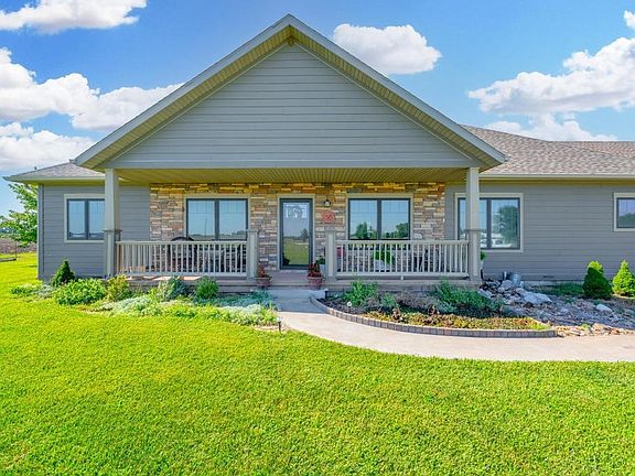 Welcome home! This ranch style 3 bed, 2 bath home and outbuilding is on 4.7 acres of nicely manicured land. The house is extremely spacious - enter into the foyer that expands into the formal dining space and huge living room. Another dining space connects the living room and kitchen. The kitchen features lovely knotty alder cabinets and nice concrete counter tops. The master suite is a nice size with a large bathroom with heated floors and a walk-in closet. There is also an office, two additional bedrooms, guest bathroom, laundry, and plenty of closet storage space. Above the garage is a bonus room - imagine the possibilities in this space! In the attached garage is a concrete safe room. Outside is a sprinkler system. There is also a 39x63 outbuilding and pasture space. Norwich is a neat small town with a little bit of everything, an easy 30 minute commute to southwest Wichita. Schedule a showing today to make this country home YOUR new home!