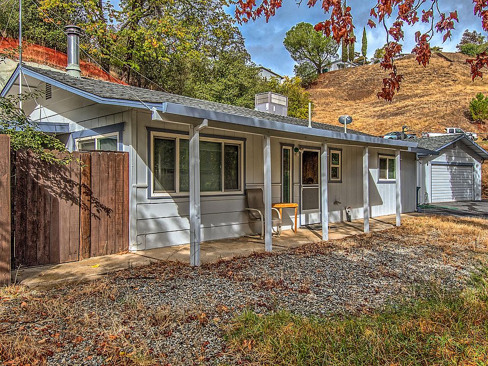 Tucked away on a hillside, this home features 2 bedrooms, 1.5 bathrooms with indoor laundry and a cozy wood stove. This home has updated flooring and windows through out the house. Covered patio, mature trees fenced in yard. 2 car detached garage and paved driveway. Short drive to Shasta lake.