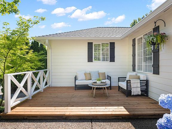 Enjoy this beautifully renovated home down the street from one of Sherwood's nicest parks - Snyder Park! One-level living with steps only from the garage and a large corner lot. Embrace all of your outdoor space in a neighborhood of lovely homes and notice the privacy in your backyard, unlike many newer developments. When you open the front door you'll be welcomed by a vaulted great room with a cozy fireplace, laminate flooring, bright natural light and open to the newly renovated kitchen. Quartz countertops, new cabinetry, stainless steel appliances, and elegant finishes encompass the kitchen area all with an eating bar. New doors and hardware, lighting, updated bathrooms, newer roof, new gas furnace, new exterior paint and shutters, and newer front deck. Stroll to old-town Sherwood for one of their many festivals or events and appreciate the highly-rated schools. Don't miss this one!