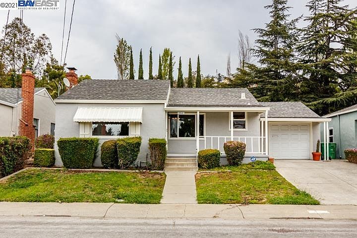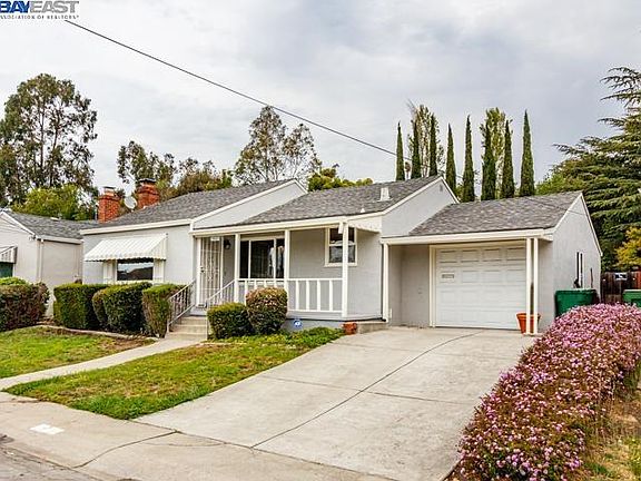 Come see this lovely, move in ready home. Relax on the front porch or enjoy the private, large backyard with a deck for entertaining that is ready to for someone to make their own. The home also features an open layout between the dining area and updated kitchen with gorgeous glass cabinets. The home also boasts an updated bathroom, hardwood floors, unique and beautiful light fixtures, dual paned windows, recently painted interiors and exteriors, and much more. It is also a short distance to nearby shops, 580 freeway, and Bayfair BART.
