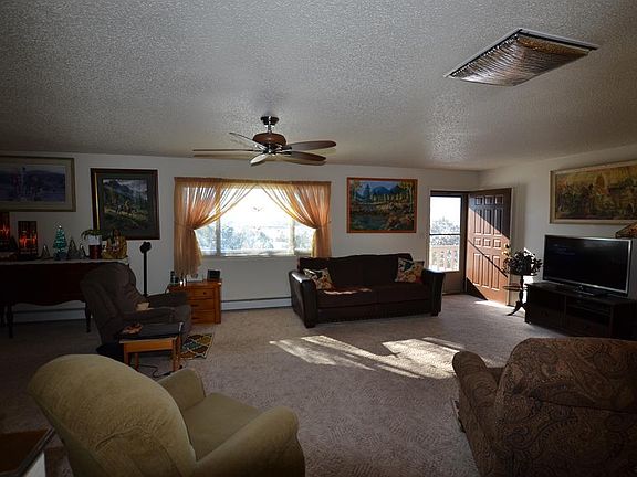 May be the best view lot in Penrose! Well built home with pride of ownership and lots of extras! Big wrap-around Trex Deck where you can enjoy the views of the Wet Mountains and Sangre De Cristo snow-caps, and then enter the big living room at the front of the house. Living room has a fireplace with a brick hearth, and adjoins the kitchen and dining area. Beautiful kitchen with new appliances, breakfast bar, pantry, dining nook and dining room, all with new composite flooring. Nice size master bedroom on main level is a big plus. Two bedrooms up and two down, all with new carpet. Family room in basement as well as two more big bedrooms. Basement has an indoor workshop and a 1-car garage stall. Fantastic setting on 10 acres and includes a new 30 x 36 shop, a detached 2-car garage, an attached 1-car garage, greenhouse, shed, and an indoor Shop! Lots of room to tinker here. Nice landscaping, New roof in 2017.