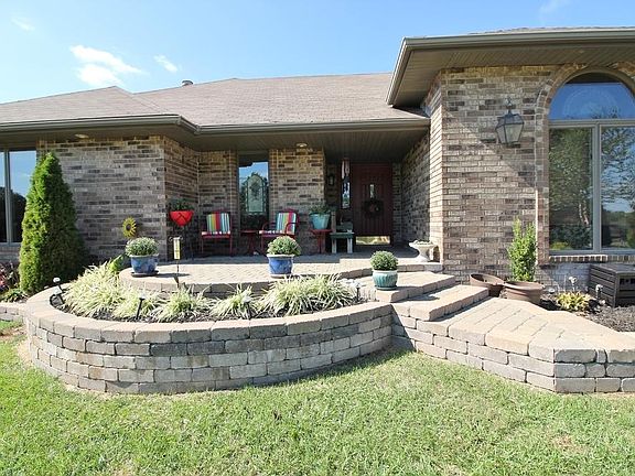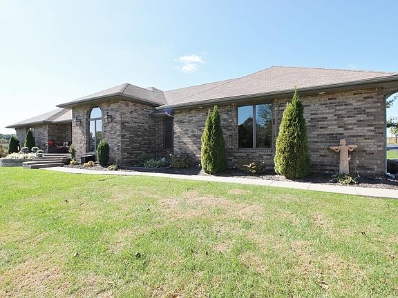 From one of the highest points in Christian County, this 2.15 acre property has exquisite views. Wonderful landscaping welcomes you to the front porch. The 4 BR, 3.5 BA home with 3-car garage has 2 living areas, formal dining & huge family room downstairs with gas fireplace. Notice the unique ceiling treatments throughout. Kitchen has built-in desk, wall oven, island & pantry. Master suite has walk-on shower, 2-sink vanity, walk-in closet & private sun room! 2 more BR's, hall bath, laundry room & powder room complete the main level. The basement has a large open family room--big enough for game tables--plus 4th BR & bath. There is a deck & patio area to sit & enjoy the peace & quiet of the country setting surrounded by farm land. Bonus: 24x40 outbuilding. Don't miss this opportunity!!