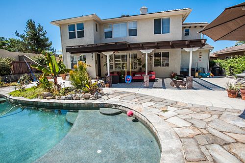 Move in ready Eastlake home has 5 bedrooms, 4 full baths. with one bedroom and full bath downstairs. Upgrades galore! Custom designer paint, plantation shutters and gourmet kitchen with 6 burner Viking stove, oversize center island, slab granite countertops and stainless steel appliances. Sturdy dark plank hardwood floors upstairs in hallway and all bedrooms. Elegantly remodeled master bath has new basin sinks, cabinets and upgraded shower and bath. All bathrooms have granite countertops. Enjoy entertaining in the resort-like backyard and swim in the custom salt water pool with pebble-tec finish. Outdoor gas fireplace, and built BBQ anchor the cozy patio area. Lots of extras! Ceiling fans in all bedrooms, A/C, fully paid for solar system with wi-fi monitoring, built in water filtration system, energy efficient pool equipment.