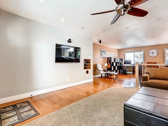 Corner lot with finished Garden level basement. 2008 Remodel with large covered porch, flag stone gas fire-pit patio. 2011 Hardie cement board with high r-value foam siding. Owned 6.5kv Smartphone controlled HVAC/Solar system. 6-16 Xcel bill $11.00, LED lighting, Lennox dual stage Furnace/Air Conditioner. 2013 Low-E Argon glass windows with full screens and dual-opening. Hardwood floors, custom cook's kitchen, Top line Stainless Steel appliances, dual fuel JenAir stove bordered by chopping block counter top. Instant hot water tap sink. Glass door/back lit/chalkboard cabinets. Jetted bath tub. Bamboo flooring, Water efficient toilet. Custom master closet. Finished garage-insulated/industrial-grade epoxy coated floor. Work bench w/storage. Basement Claw-foot tub, Rec room, utility/laundry room. Back yard retreat w/covered Timber-Tech composite deck, stamped concrete walkway, 8-person hot tub, paver-stone patio, Plumbed gas fire-pit, Raised fort built in with trap door among pines.