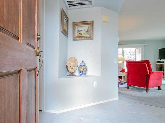 Beautiful corner unit with mountain and desert views from the front. 2 bedroom, 2 bathroom, 1 car garage. This is the perfect seasonal or year around home. Quiet and private back yard with covered patio and storage room. There are two GVR rec centers close by. Great, friendly neighborhood.
