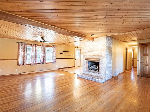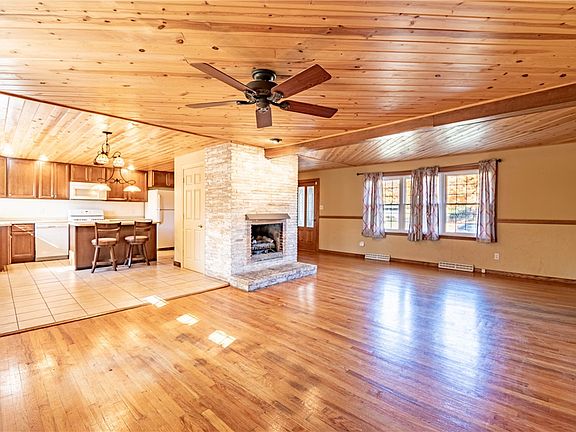 Gas fireplaceIsland with storageCorner lotPatio for outdoor entertainingNatural wood on ceilingHardwood flooringNewer cabinets