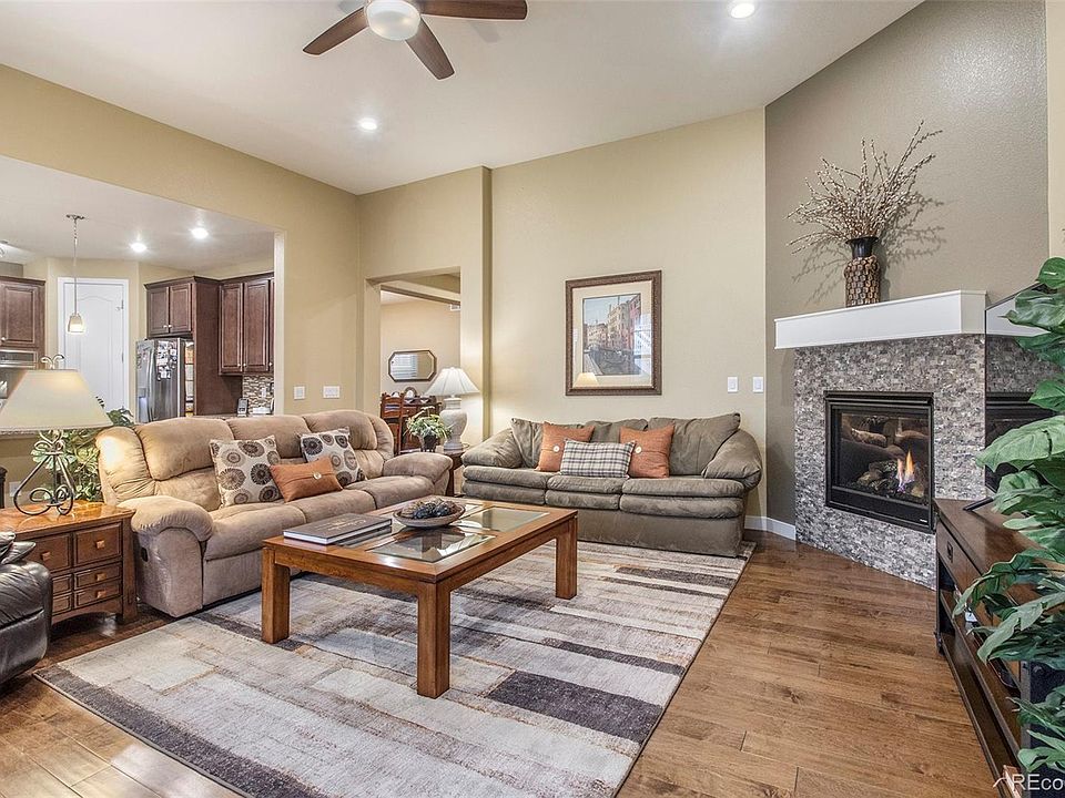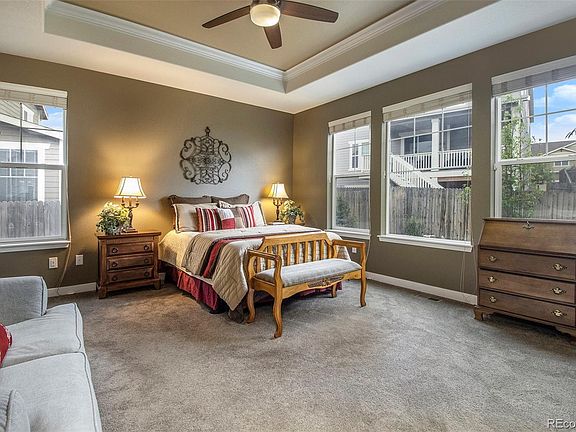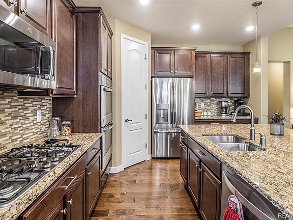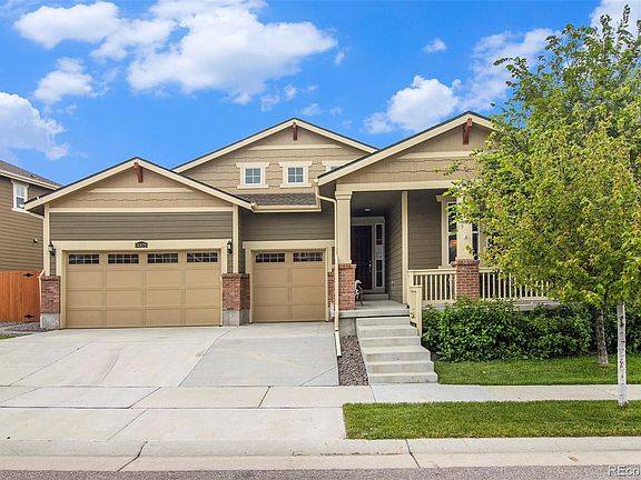 Welcome to this beautiful ranch-style home in the highly desired community of Sierra Ridge! This stunning, well cared for home features 4 bedrooms, 3 full bathrooms, and a rare 3 car garage. It's the largest ranch-style home in the community with 2,500 square feet on the main level plus a full unfinished basement. As you enter, you are greeted with high ceilings and stunning hardwood floors. The gourmet kitchen is a chef's dream with a 5 burner gas cooktop, range hood vented to outside, double oven, pantry, and oversized island. Enjoy entertaining in this open floor concept home with an eat-in kitchen plus a formal dining room. The primary bedroom features coffered ceilings and a 5 piece en-suite bath with a soaking tub. The layout of this home is ideal as the primary and secondary bedrooms are close in proximity to the laundry and second full bath. Two additional bedrooms, or study, share a full bath. The 600 square feet of upgraded carpet in the basement will stay as it is perfect for a play space or sitting room. There is an additional 2,200 square feet of storage space ready for you to finish. Enjoy relaxing on the covered front porch or on the back patio where you can enjoy the relaxing sounds of the low maintenance waterfall. This home just got a brand new roof & gutters! Plus, save on your monthly electric bill through Sunnova Energy. Don't miss your opportunity as homes in this area sell fast. Perfectly located with easy access to I-25, Downtown Parker, Sky Ridge Hospital, and the Denver Tech Center.