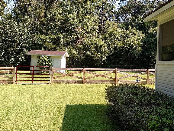 Storm windows, plenty of cabinets, 34x8 screen porch with removable panels, metal roof, 24x11 deck, 24x20 shop garage with work benches, power, concrete floor. 40x30 entertainment barn with wood burning stove, 1/4 bath in barn loft, concrete floor, power (separate meter), water, loft, double doors front and back, Covered patio 26x15. Entire property (2.3+ acres) fenced. Separate tank for Barn and RV, large enough for house or mobile home. Bathroom and Landry room remodeled. Peaceful Living.