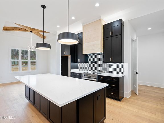 Builder offering to finish out OUTDOOR KITCHEN and $10,000 towards buyer's closing concessions w/ accepted contract by 2/15/25! Wow! Welcome to this stunning modern farmhouse new construction, where contemporary design meets rustic charm! Located in a serene and picturesque 3-acre rural setting, this home offers the perfect blend of luxury and elegance. This modern farmhouse offers everything you need to enjoy the tranquility of rural living with all the comforts of modern design. This home boasts an open design that promotes a spacious and welcoming atmosphere. Engineered hardwood floors flow seamlessly throughout the entire living area, offering both beauty and durability. The kitchen is a true highlight, featuring sleek quartz countertops that complement the custom cabinetry that extends all the way to the ceiling, maximizing storage space and wood shelving with undermount lighting adds a touch of sophistication. A decorative wood vent hood serves as both a practical and stylish centerpiece, while commercial-grade appliances ensure top-tier performance. For added convenience, a pot filler above the stove makes cooking even easier, rounding out this impressive kitchen design. Other features include split bedroom plan with 3 bedrooms on one side, primary bedroom on the other, elegant office with barn door entry, primary bath with barn door entry, free standing tub, separate vanities and walk-in shower with decorative wood surround. laundry room has storage and folding counter and lots of room. The list just goes on and on! Wood beams in breakfast area, and great room, and a real wood burning fireplace! Pantry includes all wood shelving and offers outlets to plug in small appliances. The exterior is a wow factor too. Board and Batten and brick exterior, covered from porch and oversized covered back patio is amazing! Back patio is also stubbed out w gas line and water lines for future outdoor kitchen and sink. House also house exterior lighting and gorgeous view of a 3-acre lot.