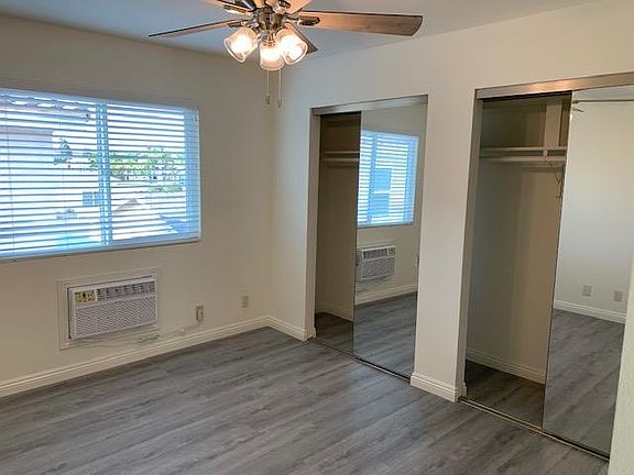 Fantastic upstrs Unit with with many modern features! Comes with hard floors, upgraded kitchen and bathrooms, recessed lighting, and it has 3 wall AC Units. The two bedrooms are on opposite sides, separated by kitchen and living room, so it's like having two Units! Even the whole exterior of the Property and Garages were redone. Comes with a 1 car garage. Laundry room is onsite. This Unit is very nice & won't last! 1 year Lease minimum. No smoking.