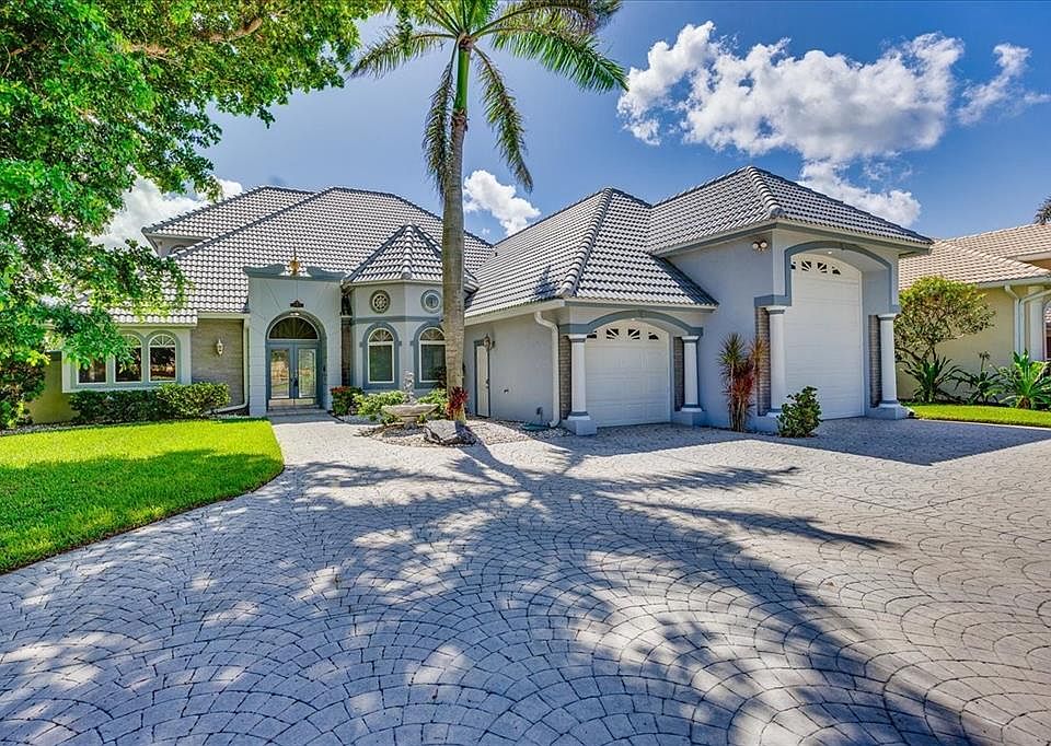 Custom-Built Estate – Lake & Golf Course Views* Welcome to this one-of-a-kind custom-built home in a quiet, gated community within the Caloosahatchee River Communities. Built in 1994 and lovingly maintained by its original owner, this two-story residence offers 3 bedroom/3 full baths and 1 half bath with 3,238 sq. ft. of living space. Step inside to discover soaring ceilings, an open and airy layout, remarkable views, and endless potential. Move-in ready as is or easily reimagined with a modern or contemporary remodel. The heart of the home opens to a spacious screened lanai for outdoor living with an inground spa, perfect for relaxing while overlooking the serene lake and distant golf course views. There is a built-in grill for outdoor dining as well! Primary bedroom and bath located on ground floor while the other 2 ensuites w/full baths are located up the luxurious staircase with access to a spacious, private balcony with views that take your breath away. Other highlights of this property include a Home Office w/closet (potential 4th bedroom); RV garage with electrical & plumbing w/in an attached main garage; Automated and manual hurricane shutters; Beautifully landscaped; Tile roof updated 10/2023; 2 HVAC systems, and a whole house intercom system. Additionally, this property comes Partially Furnished if desired. With HOA amenities that include boat slips, boat storage and launch with direct access on the river, tennis/pickle ball courts, and a pool, there are many activities to enjoy within this community. Property has never flooded but has an assumable/active flood coverage. Don’t miss the chance to own this rare gem in one of Fort Myers’ most desirable locations -- where tranquility, space, and value come together in Water’s Edge.