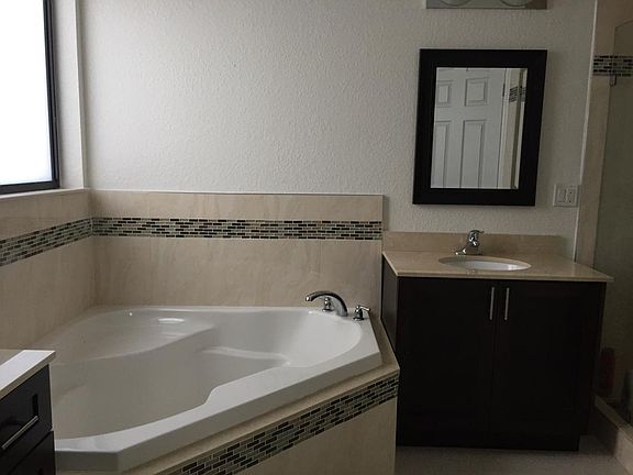 New home 4/3 Split floor plan, master bedroom with roman tub, walk in closet, 2 car garage, Port Cochere style entrance, brick pavers driveway with Fountain, porcelain upgraded flooring, Tiki Hut w/BBQ deck area for entertaining. Contemporary Modern Kitchen, stainless steel appliances, Impact Windows. Tenant will pay $100 professional fee to Global Luxury Realty at closing. Tenant will pay $100 professional fee to Global Luxury Realty at closing.