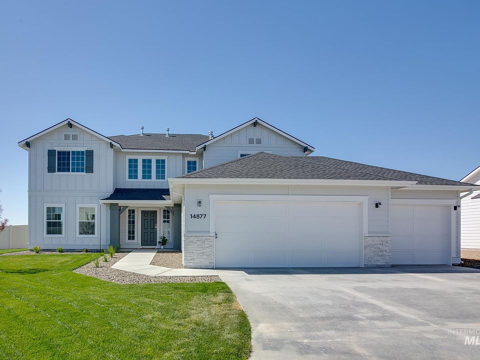 This brand new home located in vibrant Nampa, Idaho welcomes you with open arms on a large corner lot. Prepare yourself for modern splendor in the Milano 3250. Breeze through the 2-story vaulted entryway to discover the grandeur that awaits inside. The floor plan flows seamlessly through the main level and sweeps past the formal dining room, spacious kitchen and living room, and an additional gathering room. The kitchen includes NEW Greyloch soft close cabinets! A main level bedroom and adjacent full bath offer a perfect guest suite or an office space. Head upstairs to find a central loft flooded with natural light and 3 additional bedrooms. Double doors lead you into the primary suite, where the 18x20 foot bedroom and oversized en suite bathroom guarantee a luxurious oasis of relaxation. Photos are actual. All staging / Sellers personal property.