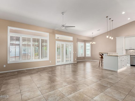 Beautifully updated, remodeled floor plan with over $170K in improvements! Vaulted ceilings, dining area & re-designed kitchen featuring elegant granite counters, tile backsplash, new custom cabinets, stainless appliances, addtl over/under cabinet lighting, pull out shelving & island w/ bar seating. Primary suite highlighted by huge walk-in closet & gorgeous exp. bathroom with large, tiled shower & dual vanity. Home office/guest bdrm with Murphy bed, desk & updated bath. ALL NEW windows, plantation shutters, new HVAC, water heater, addtl insulation, tile flooring, upgraded lighting/fans, PVC irrigation, 2-car garage w/ epoxy flooring & built in cabinets; BONUS of solar (ppd lease). Fully enclosed backyard has expanded patio, ramada, sunshades, built in BBQ & approved storage shed.